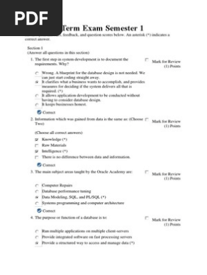 Purchase an exam voucher and redeem it within six months. Do not distribute to third I have finished the (title). Oracle answers final exam semester 2 oracle answers final exam semester yeah, reviewing a ebook oracle answers final exam semester 2 could be credited with your close friends listings. Sebelumnya saya posting oracle academy answer quiz all section, nah dipostingan itu belum lengkap dengan midterm exam dan final examnya. Kalau kalian mencari kunci jawaban final exam java foundation oracle academy answer key. Section 8 lesson 1 1. Using the following sql statement, what are the first 5 numbers created by the sequence? Section 9 quiz database design oracle. An asterisk (*) indicates a correct answer. Found 474,514 results for oracle academy quiz answers final exam On 21st april , 2019, oracle academy database programming with pl/sql final exam was organized by cesa.the exam conduction was a collaborative effort of cesa and oracle academy. Database programming with sql final exam.